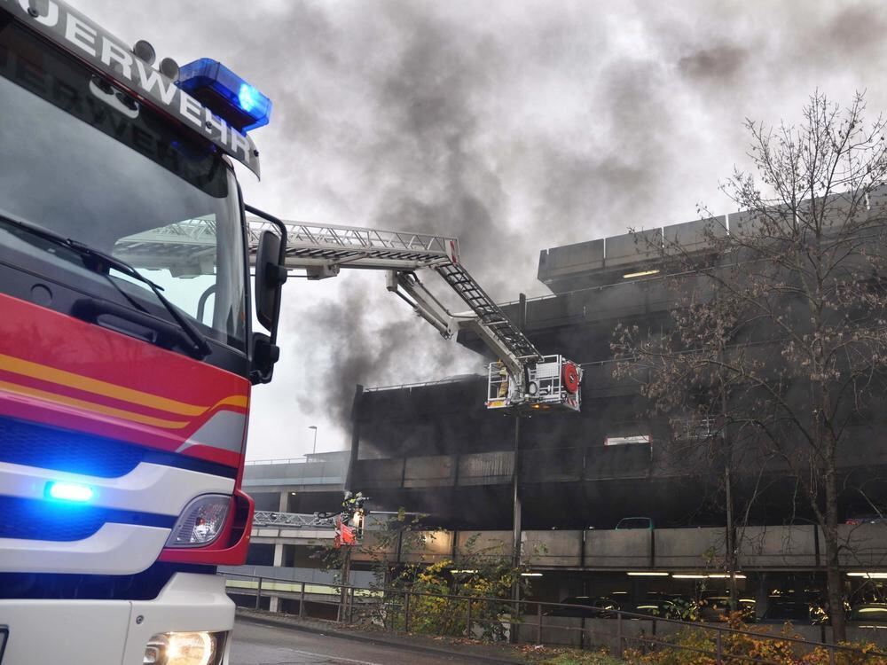 Großbrand in Stuttgarter Parkhaus am Neckarpark