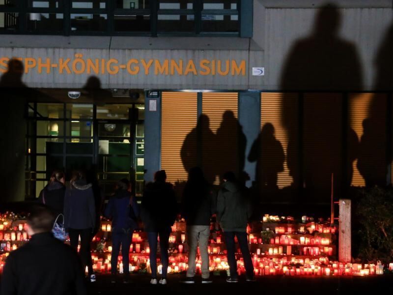 Haltern unter Schock: Menschen trauern vor dem Joseph-König-Gymnasium in Haltern. Foto: Marcel Kusch