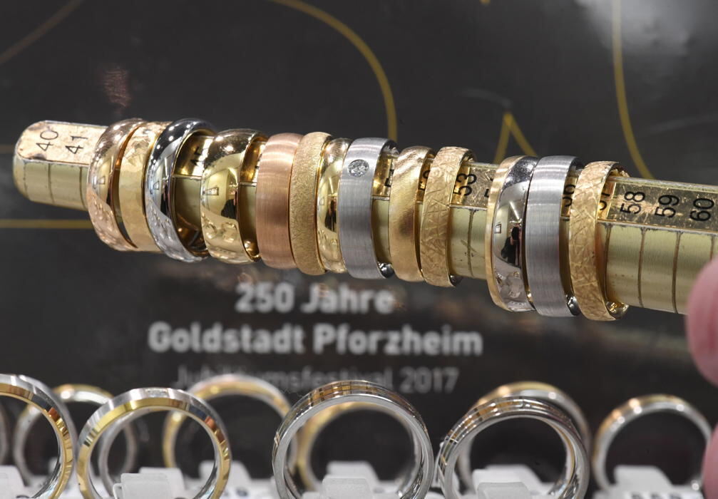 Pforzheim (dpa/lsw) - Gold geschürft wird hier nicht. Dafür kommen die meisten Trauringe aus Pforzheim. Zum 250-jährigen Jubiläum zeigt die mit vielen Problemen kämpfende Kommune, warum ihr der Titel »Goldstadt« gebührt - und hofft auf einen Imagewechsel.