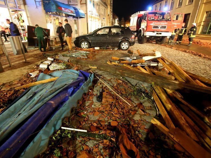 Trümmer in den Straßen von Bützow. Zahlreiche Dächer und Autos wurden schwer beschädigt. Foto: Bernd Wüstneck