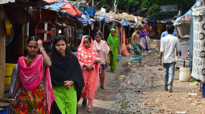 Armenviertel in einem armen Land: der Saat-Tola-Slum in Bangladeschs Hauptstadt Dhaka. Kaum regnet es ein wenig, schon verwandeln sich die Wege in Schlammpfützen.FOTOS: SCHÜRER