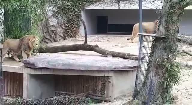 Die beiden neuen Asiatischen Löwen Kajal und Shapur der Wilhelma.