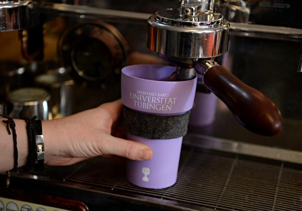 Ein Mehrweg-Kaffeebecher in Tübingen.