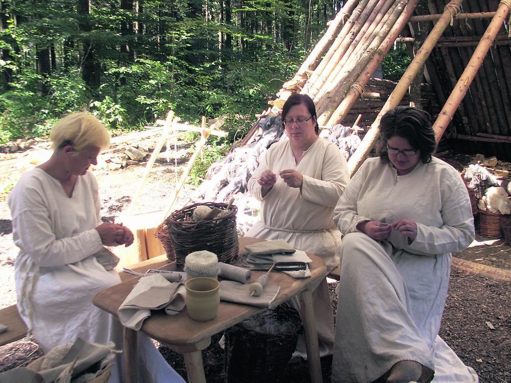 Klassische Aufgabenteilung: Die Frauen spinnen Wolle.