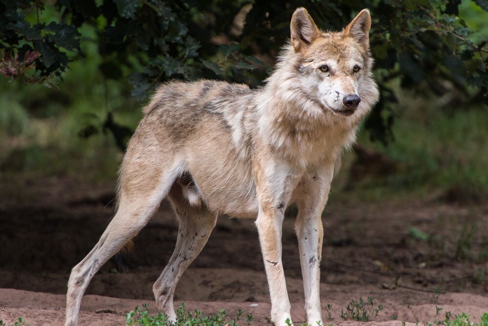 Wolf im Erlebnispark Tripsdrill in seinem Gehege. (Archivfoto) Foto: Wolfram Kastl/dpa