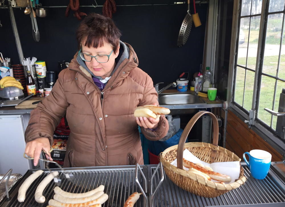 Die Imbiss- und Raststättenbetreiberin Christina Wagner steht am Grill
