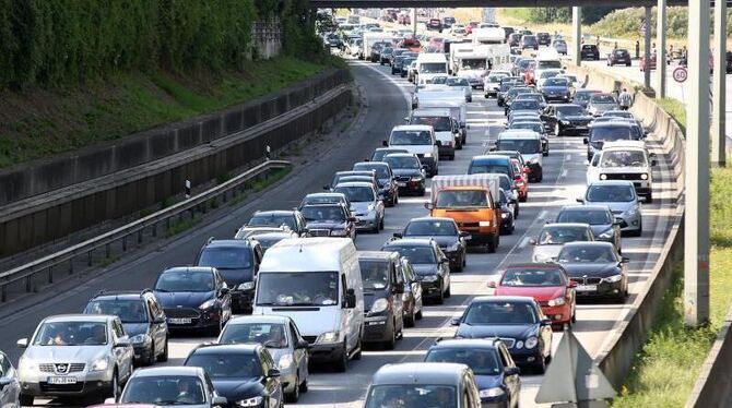 Ein Stau auf der Autobahn A7 Richtung Süden (Archiv). Foto: Bodo Marks