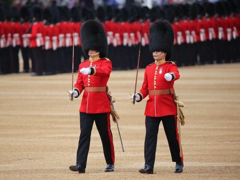 Britische Gardesoldaten in roten Uniformen und Bärenfellmützen. Foto: Owen Cooban/British Ministry of Defense/Crown Copyright