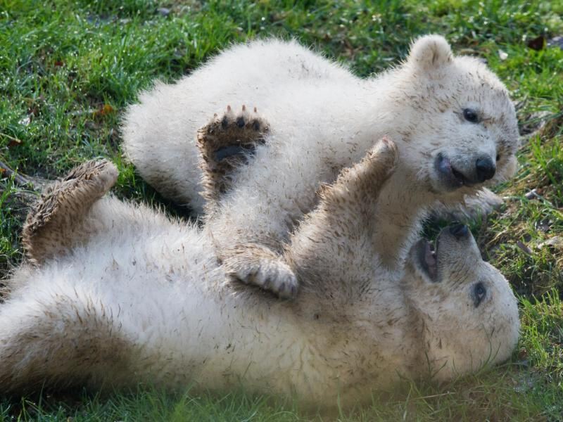 Die Eisbären-Zwillinge Nobby und Nela haben Spaß. Foto: Peter Kneffel