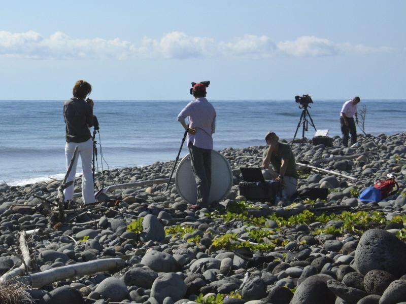 Fernsehteams dokumentieren die Suche nach weiteren Wrackteilen auf La Réunion. Foto: STR