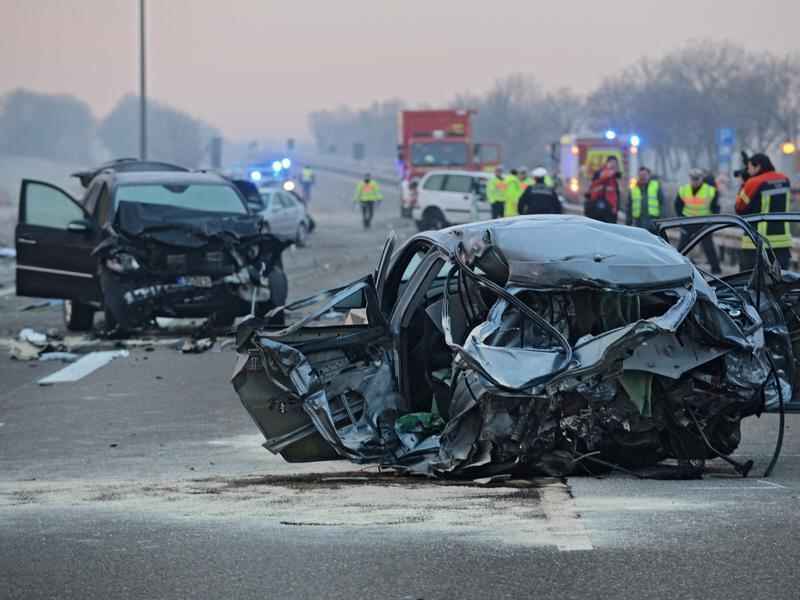 Nach einer Massenkarambolage bei Ulm sperrte die Polizei die Bundesstraße in beide Richtungen. Foto: Felix Kästle