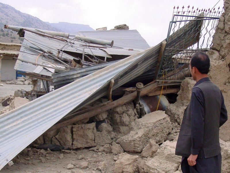 Ein Pakistaner inspiziert ein bei einem Beben zerstörtes Haus. Nun wurden bei einem Erdbeben mehr als 200 Menschen getötet. Foto: Akhtar Gulfam/Archiv