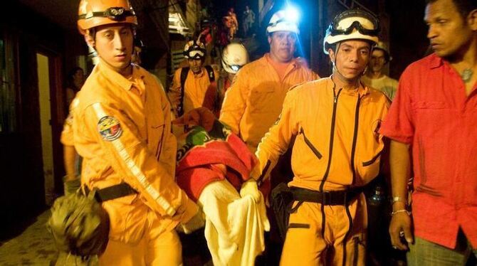 Etwa 250 Helfer suchten auch nach Einbruch der Dunkelheit fieberhaft nach Opfern unter den Erdmassen.