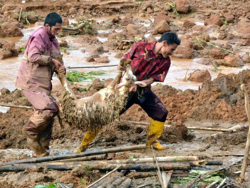 Auch Tiere sind unter den Erdmassen begraben worden. Foto: Gugus Mandiri