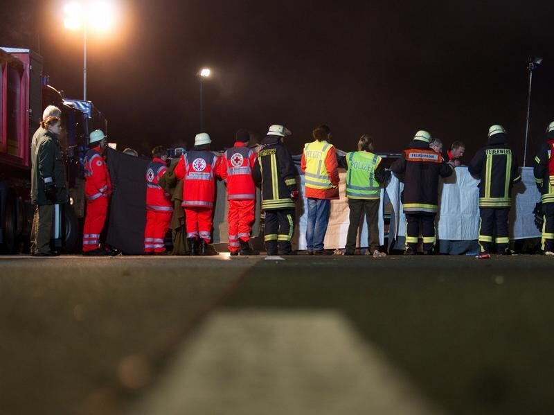 Tote werden abgeschirmt und hinter einer Plane geborgen. Foto: Friso Gentsch