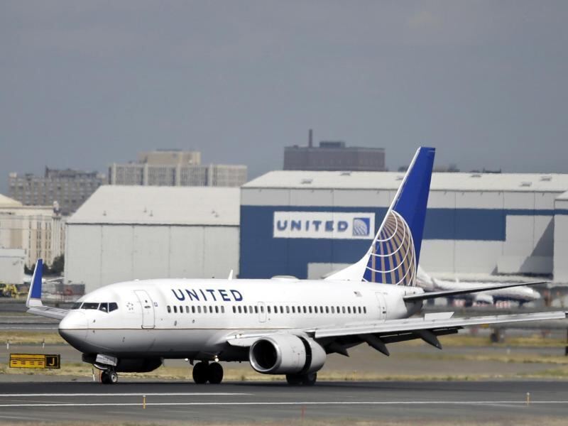 Eine Maschine der US-Fluglinie United Airlines bei der Landung. Foto: Mel Evans/Illustration