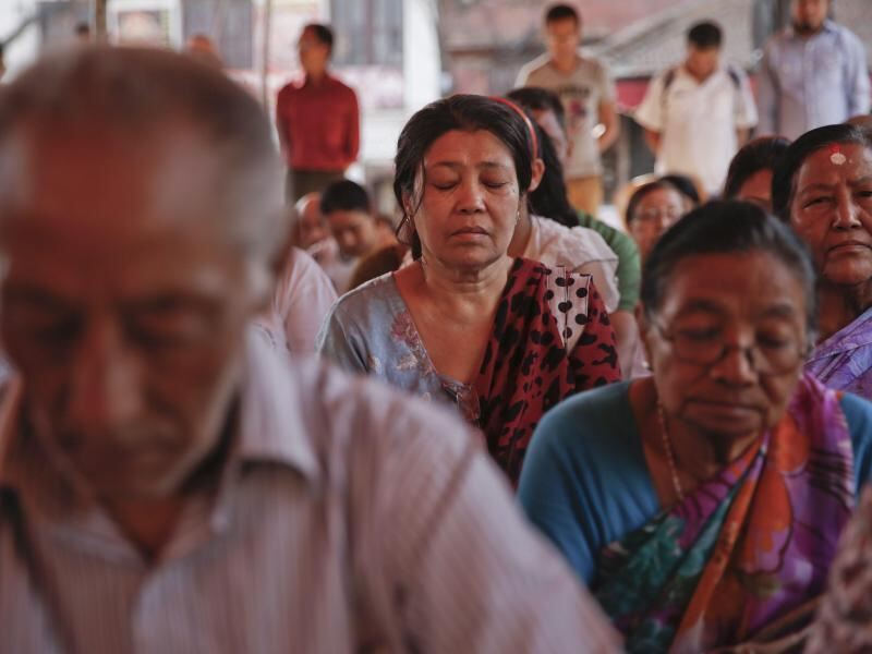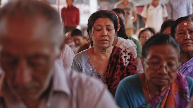 Gebet für die Opfer. In Nepal gedenken die Menschen der mehr als 8000 Erdbebenopfer der Katastrophe von vor einem Jahr. Foto: Narendra Shrestha