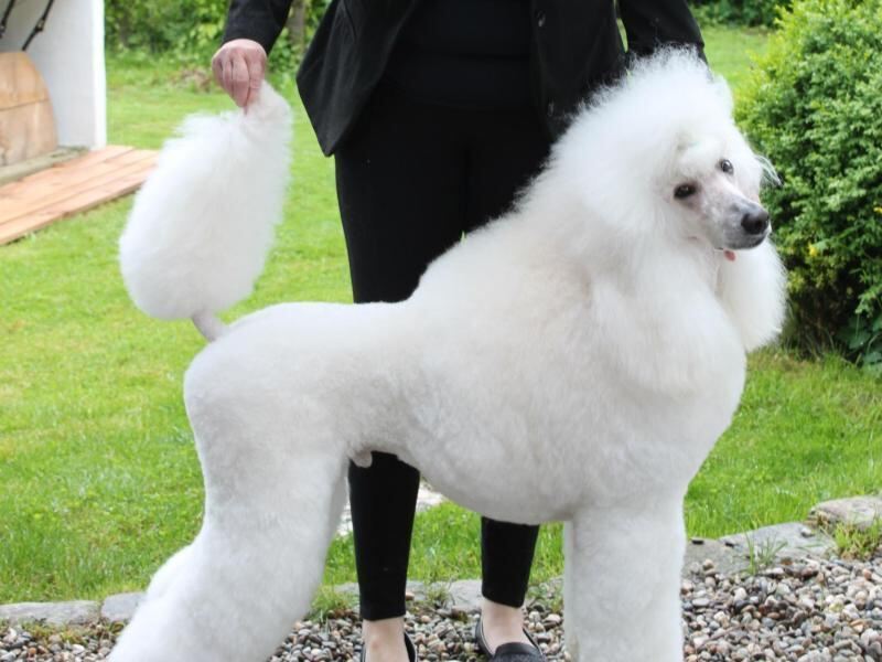 Von Kopf bis Fuß gestylt: Michaela Freimuth zeigt einen Königspudel. Foto: privat/Chiemgauer Hundesalon