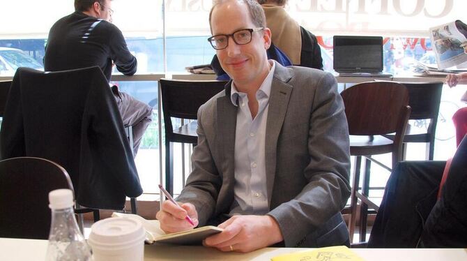Der Grafiker Christoph Niemann in einem New Yorker Cafe.