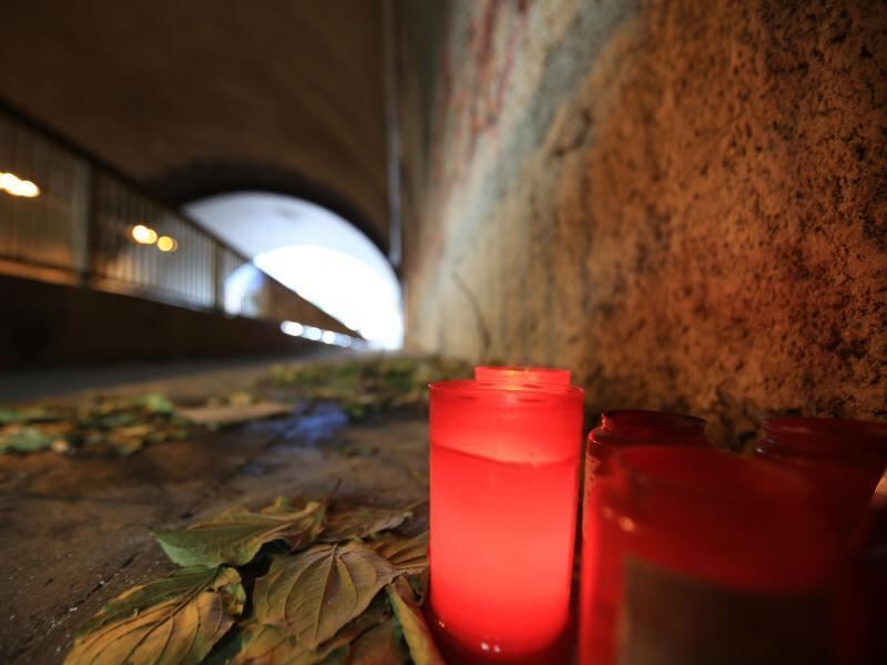 Gedenken am Tatort: Eine Kerze brennt in einer Unterführung in Köln - hier starb ein Obdachloser. Foto: Oliver Berg