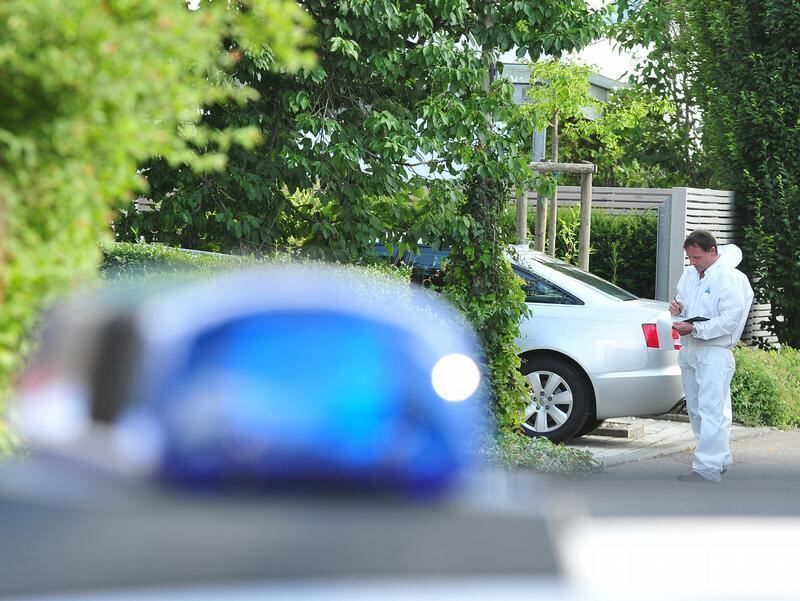 Kriminalbeamte in Heidenheim-Schnaitheim sichern Spuren am Auto von Thomas Bögerl.