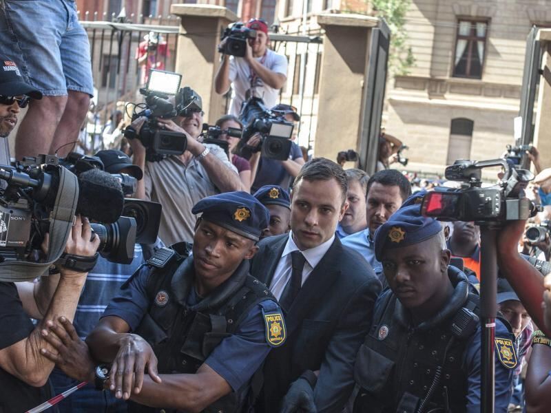Ankunft von Oscar Pistorius am Gericht. Foto: Ihsaan Haffejee