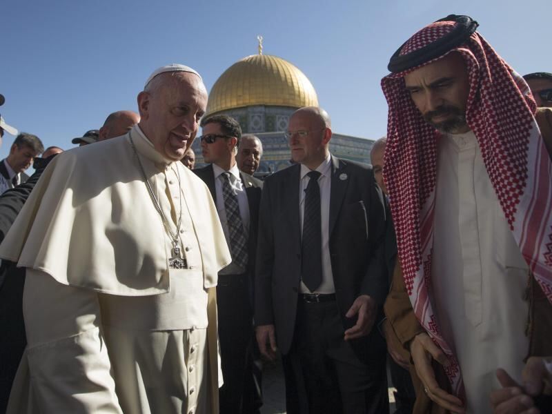 Papst Franziskus während seines Besuchs auf dem Tempelberg in Jerusalem. Foto: Oliver Weiken