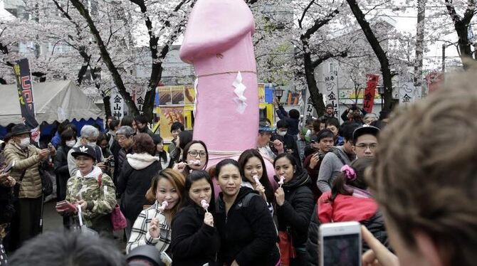 Beim Kanamara Matsuri, auf Deutsch Festival des metallenen Phallus, dreht sich alles nur um eins. Sogar phallusförmige Süßigkeiten kann man bekommen. Foto: Kiyoshi Ota