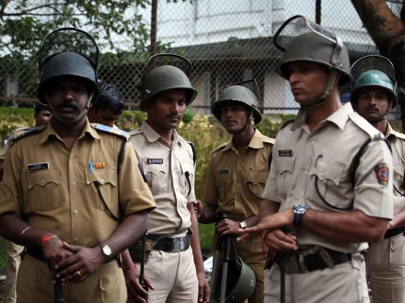 Polizisten am Eingang des Gerichtsgebäudes in Mumbai. Foto: Divyakant Solanki