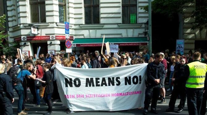 Die »Initiative für Gerechtigkeit bei sexueller Gewalt« demonstriert vor dem Amtsgericht. Foto: Jörg Carstensen