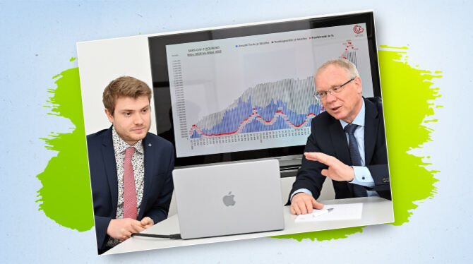 Während der Corona-Pandemie ändert die Politik ihre Teststrategie in Deutschland immer wieder. Die Anregungen kommen oft aus einem kleinen Büro im Obergeschoss der Reutlinger Markthalle. Dort erfassen Uli und Marcel Früh seit mehr als zwei Jahren die bundesweite Entwicklung der PCR-Tests und die Mutationsvarianten. Dafür erheben sie die Daten von 182 Laboren, die zusammen mehr als 90 Prozent aller PCR-Tests in Deutschland auswerten. Ihre Erkenntnisse haben die Teststrategie maßgeblich beeinflusst, erzählen sie.