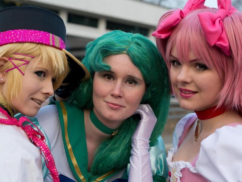 Julia Plaster (l-r) als Syo Kurusu, Julia Möller als Sailor Neptun und Saskia Raer als Madoka Magica in Hannover. Foto: Jochen Lübke