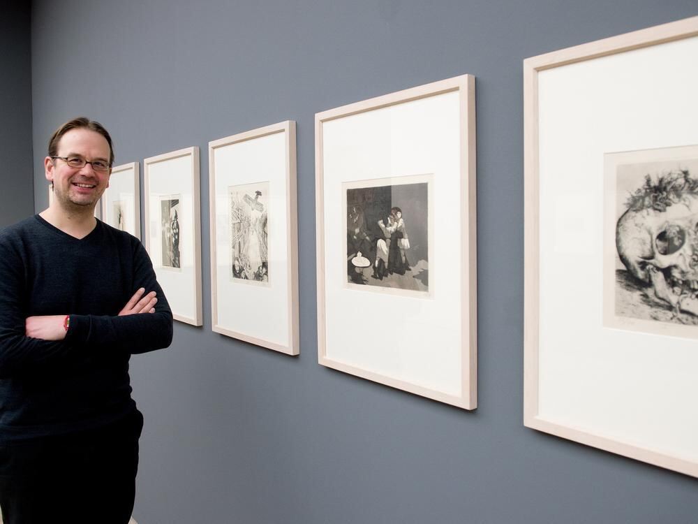 Sven Beckstette, Dix-Experte und Kurator der Ausstellung »100 Jahre Erster Weltkrieg« im Kunstmuseum Stuttgart steht vor Bildern des Künstlers.