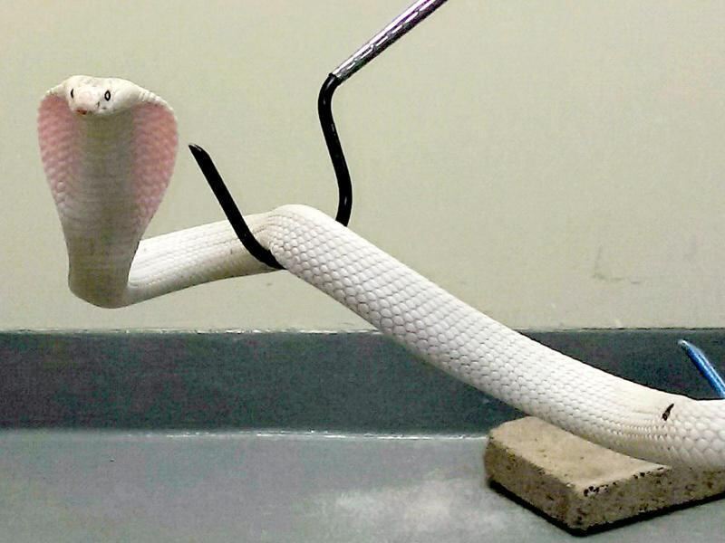Diese weiße Kobra war in Thousand Oaks in Kalifornien nach mehrtägiger Jagd eingefangen worden. Foto: Ian Recchio