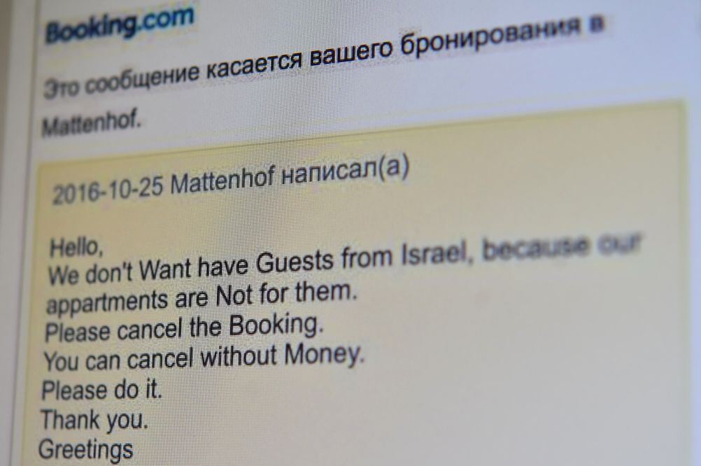 Auf der Internetseite des Hotelbuchungsportals Booking.com ist am 31.10.2016 ein Kommentar eines Ferienhofes zu sehen: »Hello, We don't Want have Guests from Israel, because our appartments are Not for them. Please cancel the Booking. You can cancel without Money. Please do it. Thank you. Greetings« Eine Gästegruppe aus Israel wurde von einem Ferienhof im Schwarzwald abgelehnt dies hat für heftige Debatten im Internet gesorgt. Foto: Booking.com/dpa