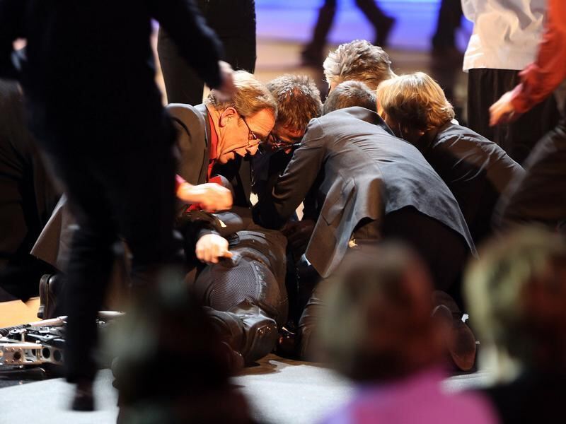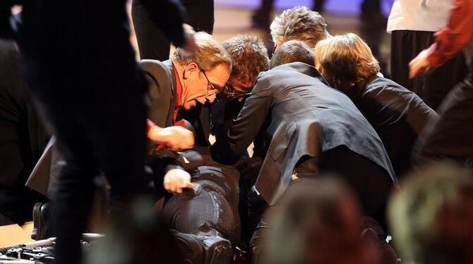 Ärzte aus dem Publikum bemühen sich um den gestürzten Wettkandidaten.