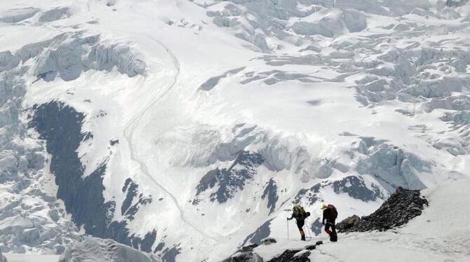 Blick auf einen Grat des Annapurnas: Ein Schneesturm war überraschend über dem Zentrum Nepals hereingebrochen. Foto: Black Yak Handout