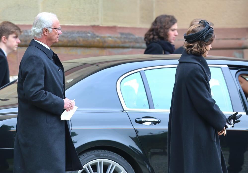 Das schwedische Königspaar König Carl XVI. Gustaf und Königin Silvia geht nach der Trauerfeier für Johann Georg Prinz von Hohenzollern aus dem Hintereingang der Erlöserkirche Hedingen in Sigmaringen.