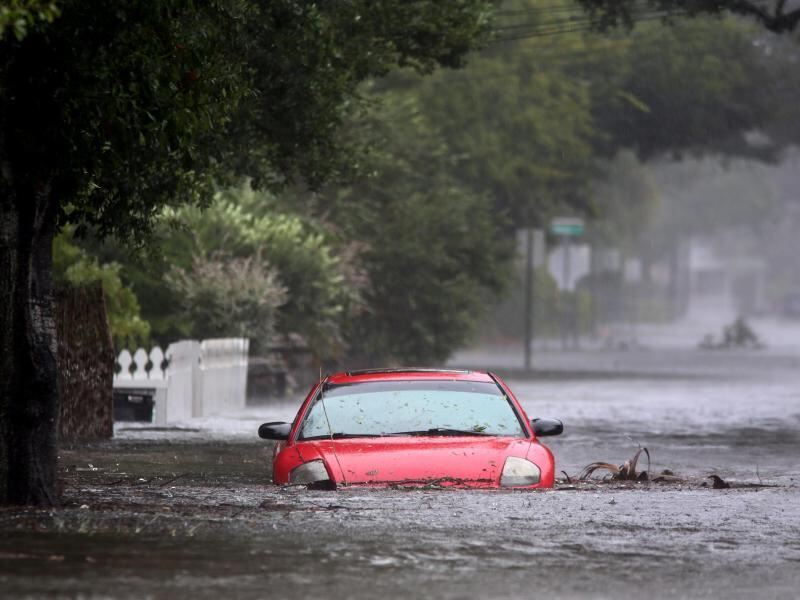 Ein Auto steht in St. Augustine, Florida, auf einer überfluteten Straße. Foto: Douglas R. Clifford/ZUMA/dpa