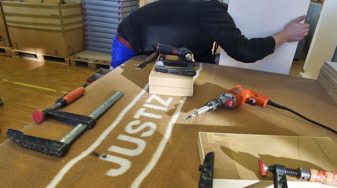 Ein Häftling baut in der Schreinerei der Justizvollzugsanstalt in Ulm einen Schrank zusammen. (Archivbild) Foto: Felix Kästle/dpa