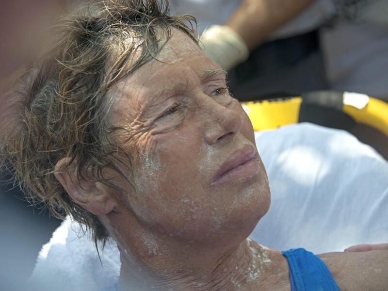 Diana Nyad: Völlig erschöpft nach mehr als 50 Stunden im Wasser. Foto: Andy Newman / Florida Keys News Bureau