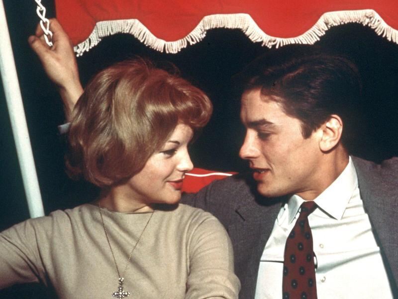 Romy Schneider neben ihrem Verlobten Alain Delon auf einer Hollywoodschaukel (undatiert). Foto: Georg Göbel