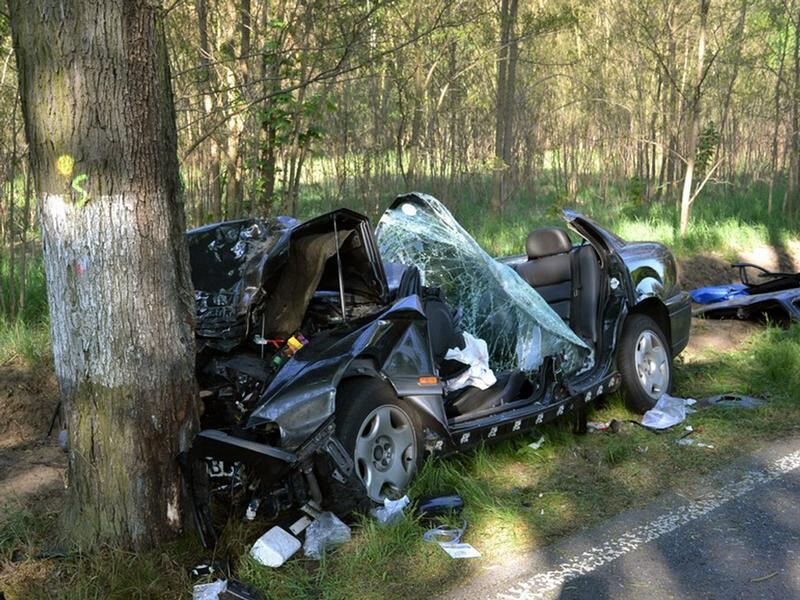 Ein völlig zerstörtes Fahrzeug im Mai 2011 nach einem Unfall im Oder-Spree-Kreis. Foto: Polizei/Archiv