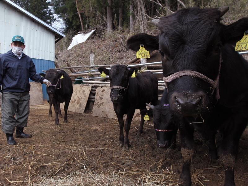 Ein japanischer Bauer füttert seine Kühe (Archivbild).