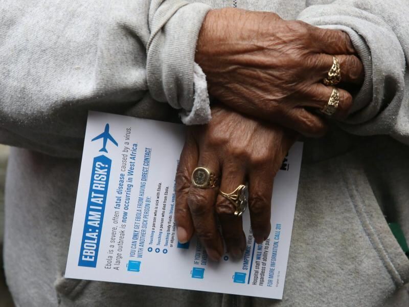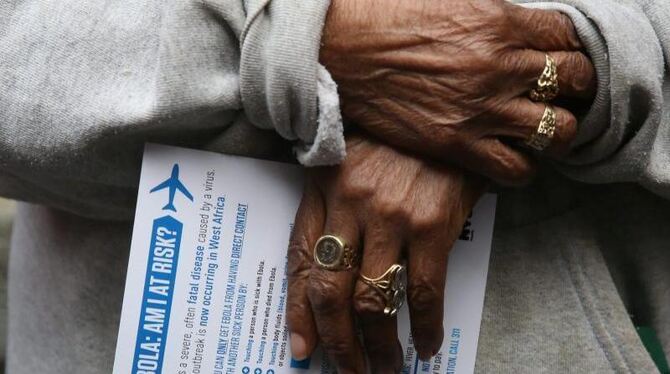 In New York hält eine Frau eine Ebola-Broschüre in den Händen: In den USA wird heftig über die Ebola-Zwangsquarantäne gestritten. Foto: Andrew Gombert