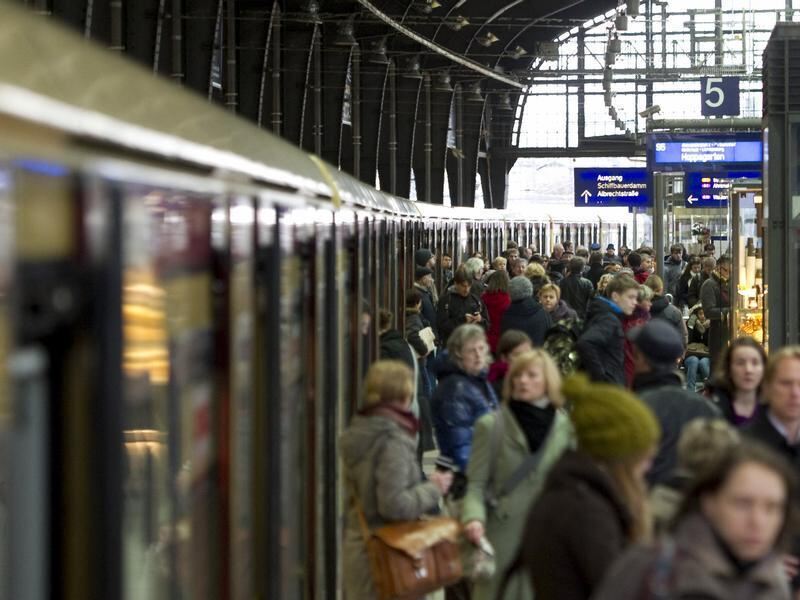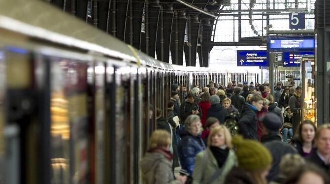 Fahrgäste stehen auf dem Bahnsteig der S-Bahn Station Friedrichstraße. Aufgrund eines technischen Defekts steht zur Zeit der komplette S-Bahn Verkehr in Berlin still. Foto: Sebastian Kahnert, dpa