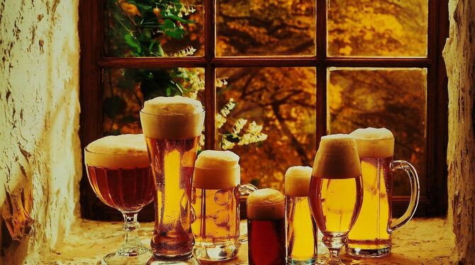 Ein Brauereimitarbeiter blickt in einen großen Braukessel (Symbolbild).