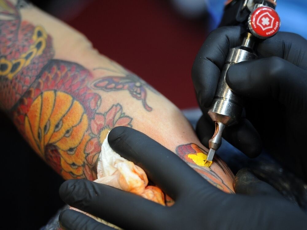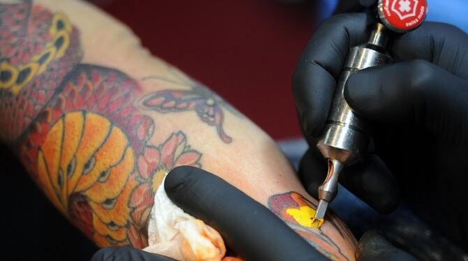 Ein Tätowierer bei der Arbeit. Foto: dpa