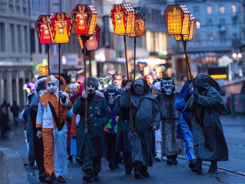 Narren ziehen musizierend durch die Gassen der Innenstadt von Basel. Foto: Patrick Seeger/dpa
