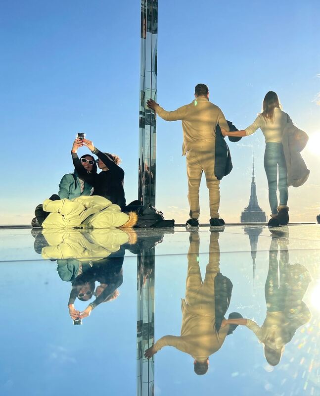 Drinnen im »Summit« ist fast alles verspiegelt und lichtdurchflutet - es ist nicht ganz klar, wo die eigene Existenz aufhört und die New Yorker Skyline anfängt. Dieses Gefühl jedenfalls soll vermittelt werden. Durch einen Raum wabern silberne Bälle wie Blasen. Kurzum: eine Traumlandschaft in der Skyline, ganz ausgerichtet auf Angeberfotos in sozialen Medien - für Extra-Dollar gibt's auch Champagner.